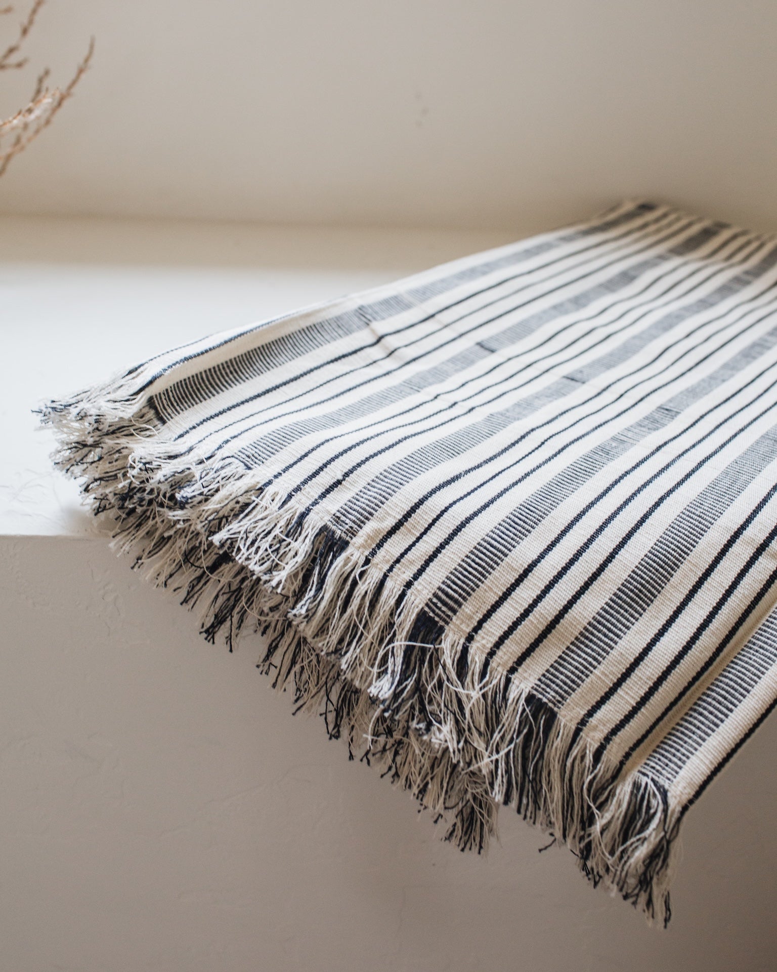 It has a beautiful fringed finish that is made by hand by artisans in Guinea.