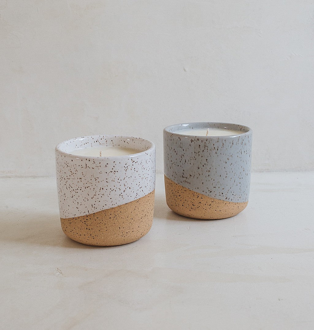 These candles are clean burning, soy wax candles. Each one is hand poured into an artisan made ceramic vessel and infused with essential oils.